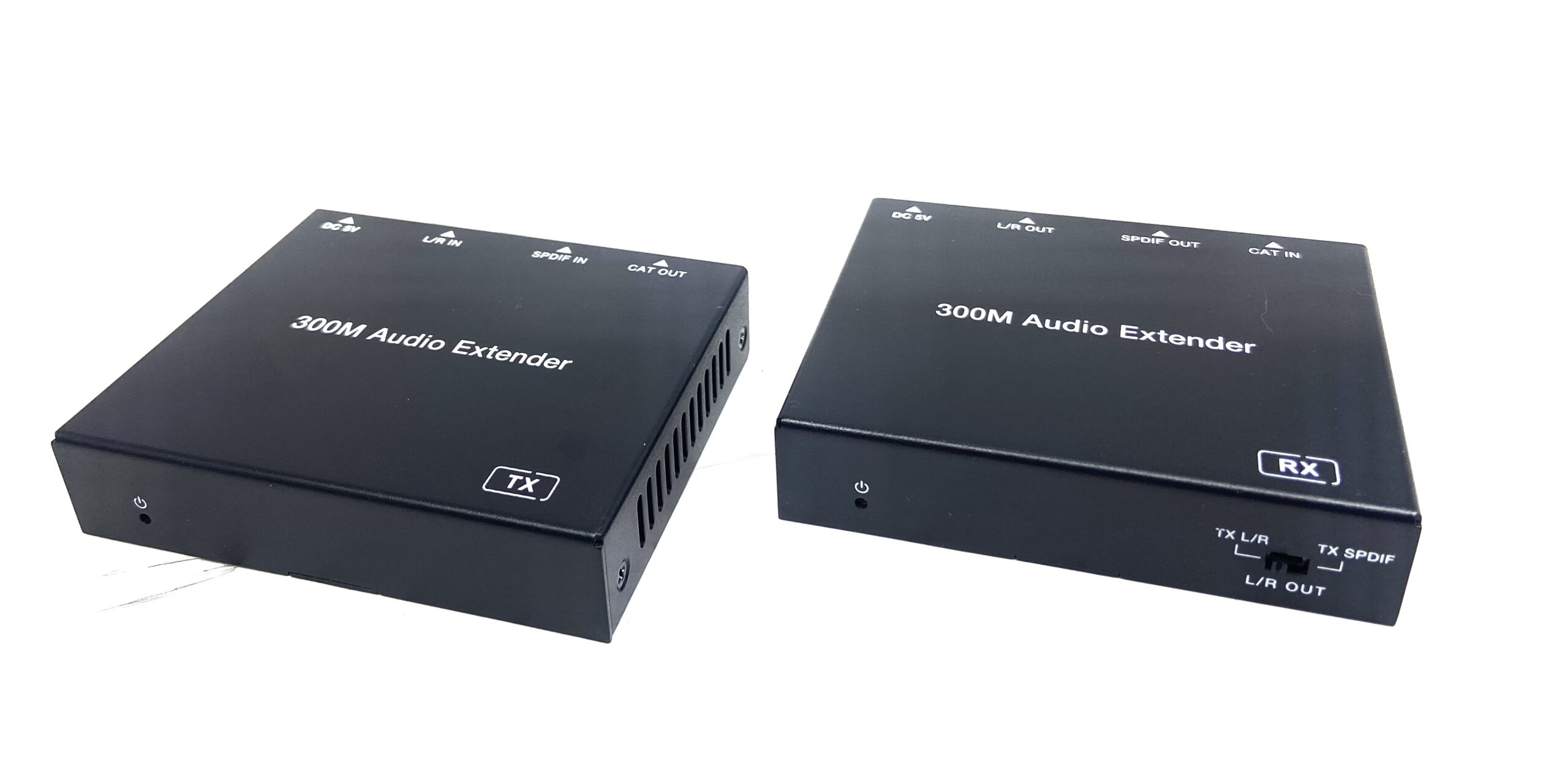 Este extensor de áudio pode transmitir sinais de áudio ópticos e analógicos digitais simultaneamente até uma distância de 300m (48KHz), 150m (96kHz) ou 100m(192kHz) em um único cabo CAT5E/6. O áudio óptico digital é passado diretamente do transmissor para o receptor. A saída de áudio analógico no receptor é selecionável a partir do sinal de áudio óptico digital ou analógico do transmissor. O extensor suporta a função POC bidirecional.